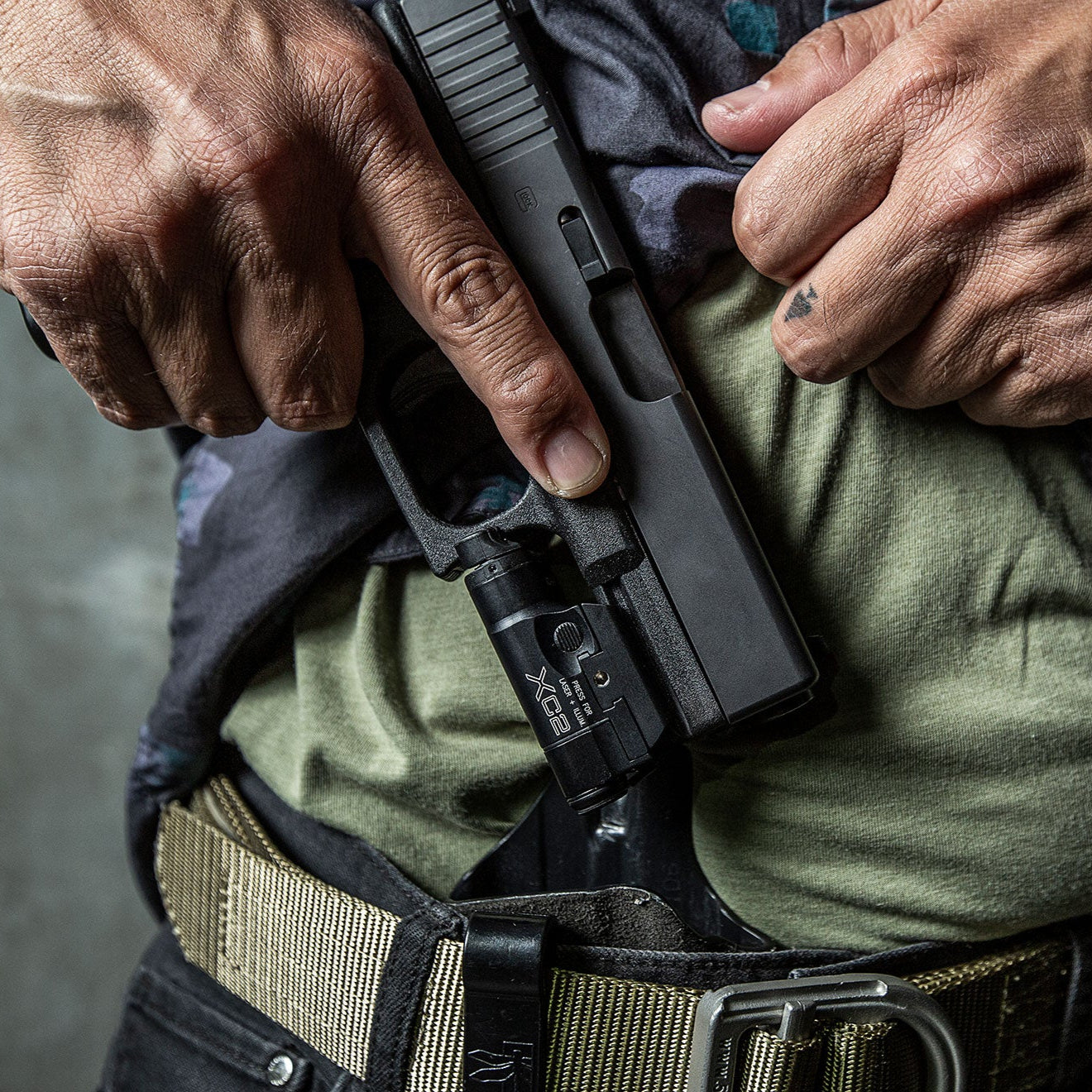 The proprietary, precision-engineered smooth parabolic reflector projects a beam with a focused hot spot for mid-to-long-range illumination along with a corona of diffused light optimized for situational awareness in the near field., while the laser allows you to rapidly acquire a target without having to align your iron sights, a critical advantage if using a nonstandard shooting position is necessary. Once zeroed, the laser rarely needs re-zeroing, thanks to a proven windage and elevation adjustable laser carriage and a robust rail clamp mount that will not shift under the effects of recoil. The XC2-B's intuitive, ambidextrous switching provides both momentary- and constant-on activation options. Its precision-machined aerospace aluminum body is Mil-Spec hard anodized and sealed to repel the elements. As a result, it's plenty rugged enough for everyday carry and light enough that it won't weigh you down.